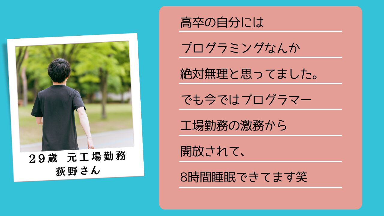 プログラミングのスキルはこの先メリットしか無いと分かっていたんですが、1歩踏み出すのをためらってたんですよね…